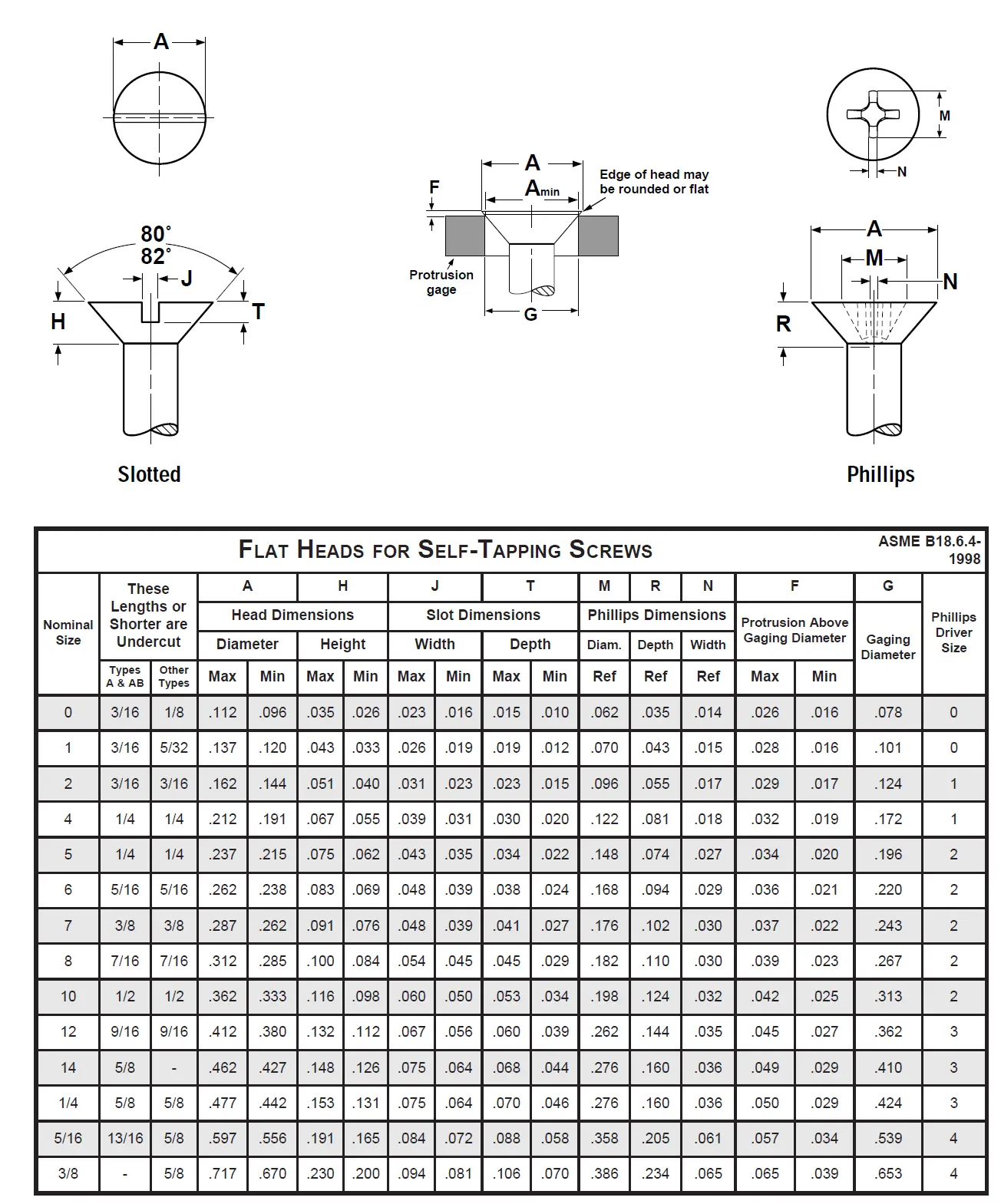 A countersunk head with a flat top surface and a cone-shaped bearing surface with a head angle of approximately 82°. Used in applications where protrusion of the fastener above the mating surface is unacceptable. Use a protrusion gage when measuring head height.